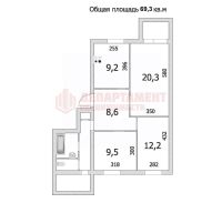 Планировка: крупный зал с выходом на лоджию. 2-е спальни. Большая 9-иметровая кухня. Раздельный санузел в кафеле. Далее 2-я лоджия-сушилка. Квадратный холл.