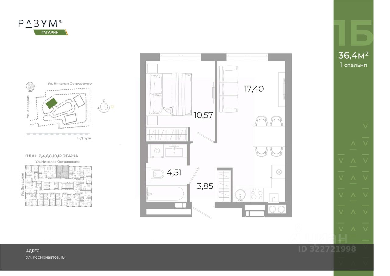 "ГАГАРИН" — это космический проект от компании "РАЗУМ", создателя "НАСЛЕДИЕ" и "Сердце Каспия". Три 25-этажных дома, как три ступени ракеты "Восток-1", на которой Юрий Гагарин отправился в космос, станут для жителей отправной точкой в начинаниях. В районе есть необходимая инфраструктура для жизни: магазины, школы, детские сады, спортивный комплекс "Звездный", гипермаркет "Лента". В первом доме комплекса есть коммерческие помещения, которые дополнят район новыми локациями. В квартирах установлены окна с отступом 50 см от пола. На пяти верхних этажах располагаются квартиры с панорамным остеклением в пол — доступны виды на весь город и Астраханский кремль! 12 планировок квартир от 25 м² до 75 м² позволят выбрать подходящий вариант для счастливой жизни. В доме представлены квартиры с балконом и без них. На каждом этаже расположено 3 кладовых помещения. "ГАГАРИН" — это: - собственный двор-парк без машин; - тематические зоны в двор-парке: пространства для отдыха и релакса с гамаками и шезлонгами, амфитеатр, зона work-out, детские игровые площадки, разделенные по возрастам, первая в городе тарзанка, водные и скалолазные конструкции, песочницы, батуты; - многоуровневое освещение и видеонаблюдение по периметру комплекса; - гостевой и многоуровневый паркинг; - просторные подъездные холлы. В основе комплекса "ГАГАРИН" заложено продуманное проектирование квадратных метров. Квартиры продаются с отделкой White box.