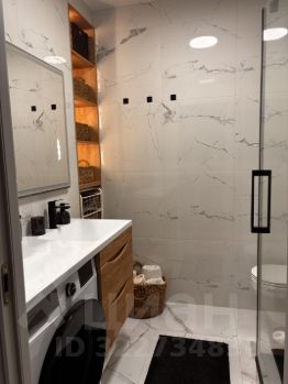 • В ванной тёплые стены (всегда сухие и тёплые полотенца), тёплый пол, зеркало и шкафы с подсветкой.
