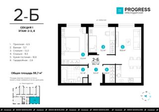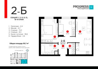Продаётся 2-комнатная квартира в строящемся доме (Дом 1), срок сдачи: I-кв. 2028, общей площадью 55.73 кв.м., на 2 этаже. Новый жилой комплекс "Точка" от застройщика "Будущее" расположен по адресу: г. Астрахань, ул. Краснодарской, 43а