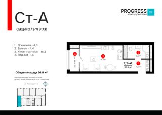 Продаётся студия в строящемся доме (Дом 1), срок сдачи: I-кв. 2028, общей площадью 26.78 кв.м., на 7 этаже. Новый жилой комплекс "Точка" от застройщика "Будущее" расположен по адресу: г. Астрахань, ул. Краснодарской, 43а