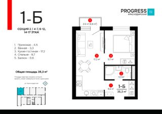 Продаётся 1-комнатная квартира в строящемся доме (Дом 1), срок сдачи: I-кв. 2028, общей площадью 35.29 кв.м., на 9 этаже. Новый жилой комплекс "Точка" от застройщика "Будущее" расположен по адресу: г. Астрахань, ул. Краснодарской, 43а