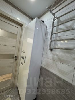 Квартира выполнена в светлых тонах, что создает атмосферу уюта и визуально увеличивает пространство. Входная зона оформлена с использованием современных материалов, есть встроенный шкаф для верхней одежды.