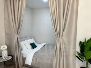 Комната 14 кв.м разделена на две зоны-зона отдыха и спальное место. В комнате есть двухспальная кровать с подъемным механизмом и ортопедическим матрасом, раздвижной диван, телевизор, шкаф, столик, подушки, одеяло.