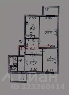 Общая площадь квартиры — 74 кв. м., жилая площадь — 42,6 кв. м., большая просторная кухня- 9,5 кв. м., санузел раздельный