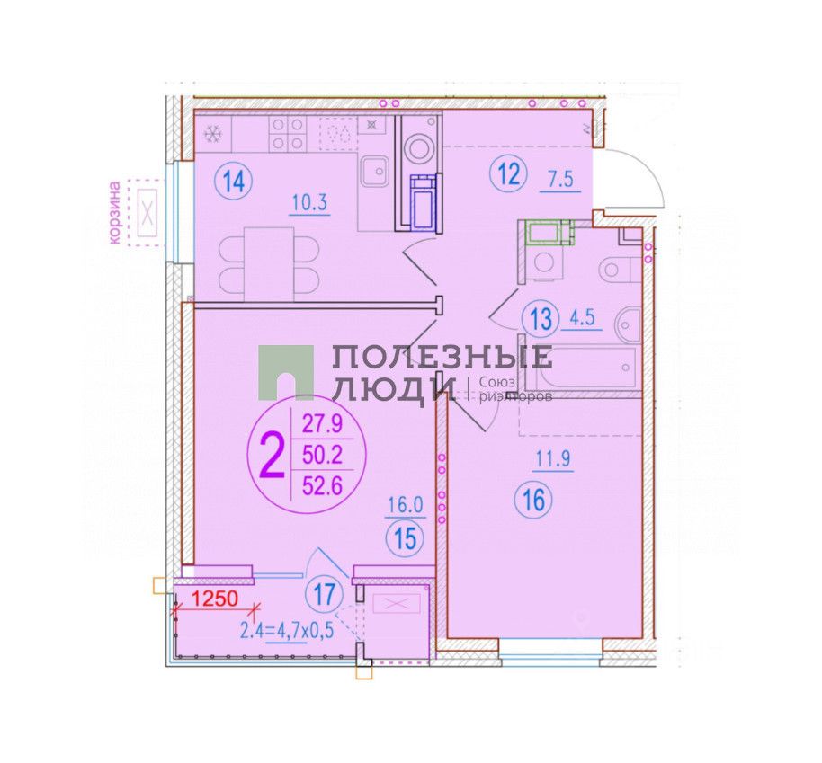 50,7 м²