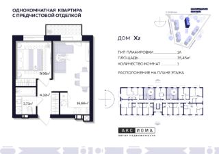 Продаётся 1-комнатная квартира в строящемся доме (Дом 2), срок сдачи: I-кв. 2026, общей площадью 35.45 кв.м., на 5 этаже. Аксиома на Тихореченской
