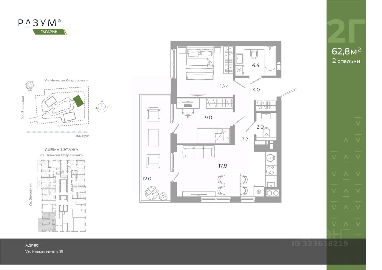 "ГАГАРИН" — это космический проект от компании "РАЗУМ", создателя "НАСЛЕДИЕ" и "Сердце Каспия". Три 25-этажных дома, как три ступени ракеты "Восток-1", на которой Юрий Гагарин отправился в космос, станут для жителей отправной точкой в начинаниях. В районе есть необходимая инфраструктура для жизни: магазины, школы, детские сады, спортивный комплекс "Звездный", гипермаркет "Лента". В первом доме комплекса есть коммерческие помещения, которые дополнят район новыми локациями. В квартирах установлены окна с отступом 50 см от пола. На пяти верхних этажах располагаются квартиры с панорамным остеклением в пол — доступны виды на весь город и Астраханский кремль! 12 планировок квартир от 25 м² до 75 м² позволят выбрать подходящий вариант для счастливой жизни. В доме представлены квартиры с балконом и без них. На каждом этаже расположено 3 кладовых помещения. "ГАГАРИН" — это: - собственный двор-парк без машин; - тематические зоны в двор-парке: пространства для отдыха и релакса с гамаками и шезлонгами, амфитеатр, зона work-out, детские игровые площадки, разделенные по возрастам, первая в городе тарзанка, водные и скалолазные конструкции, песочницы, батуты; - многоуровневое освещение и видеонаблюдение по периметру комплекса; - гостевой и многоуровневый паркинг; - просторные подъездные холлы. В основе комплекса "ГАГАРИН" заложено продуманное проектирование квадратных метров. Квартиры продаются с предчистовой отделкой.