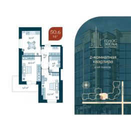 Продаётся 2-комнатная квартира в строящемся доме (Дом 1), срок сдачи: IV-кв. 2025, общей площадью 50.6 кв.м., на 7 этаже. Жилой комплекс "Голос Эпохи" возводится в центральной части города Астрахань. Представляет собой девяти этажное кирпично-монолитное здание на 192 квартиры и 16 офисных помещений, выполненное в стиле АР-ДЕКО.