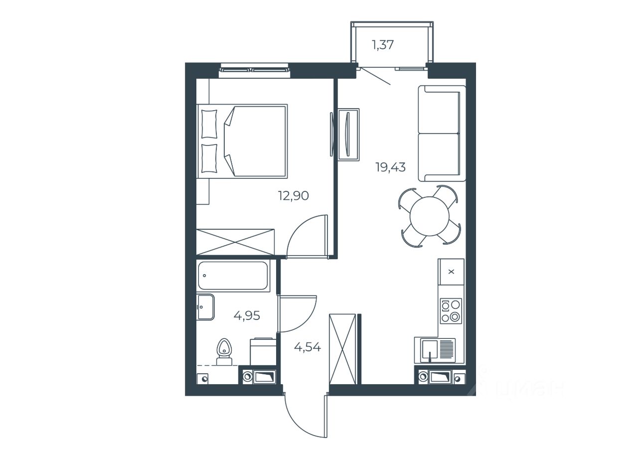 Продаётся 1-комнатная квартира в строящемся доме (Корпус 1), срок сдачи: II-кв. 2029, общей площадью 43.03 кв.м., на 16 этаже.