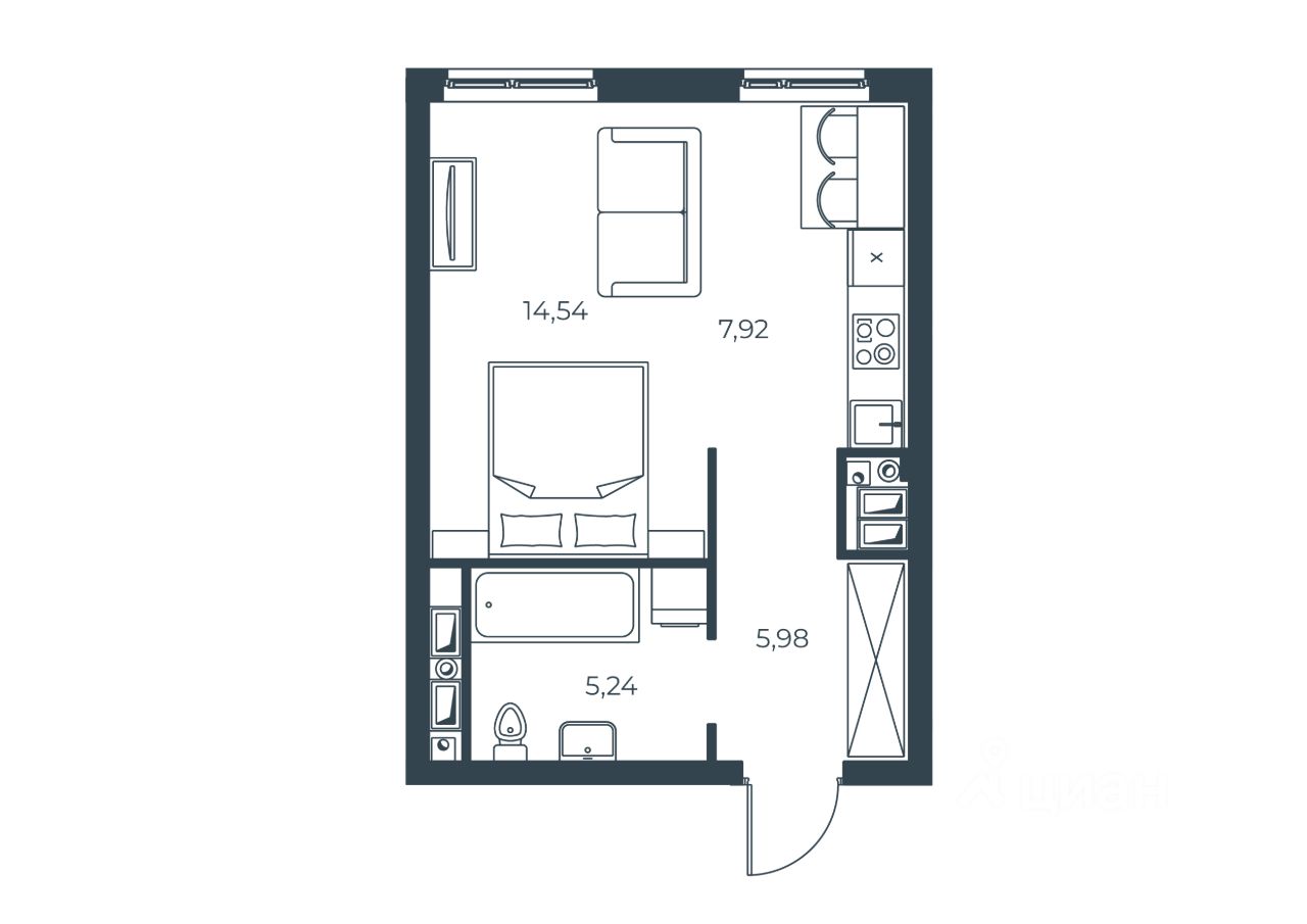 Продаётся студия в строящемся доме (Корпус 1), срок сдачи: II-кв. 2029, общей площадью 33.68 кв.м., на 21 этаже.