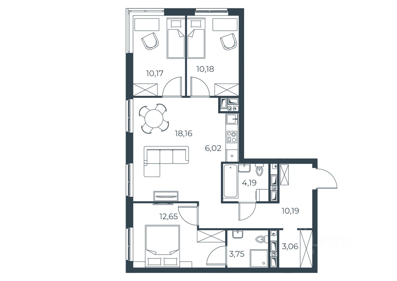 Продаётся 3-комнатная квартира в строящемся доме (Корпус 1), срок сдачи: II-кв. 2029, общей площадью 78.38 кв.м., на 23 этаже.