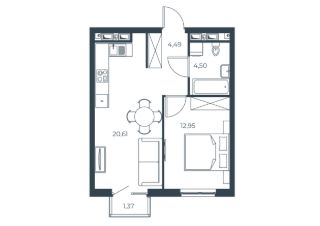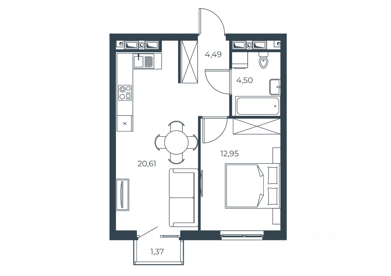 Продаётся 1-комнатная квартира в строящемся доме (Корпус 1), срок сдачи: II-кв. 2029, общей площадью 43.92 кв.м., на 25 этаже.