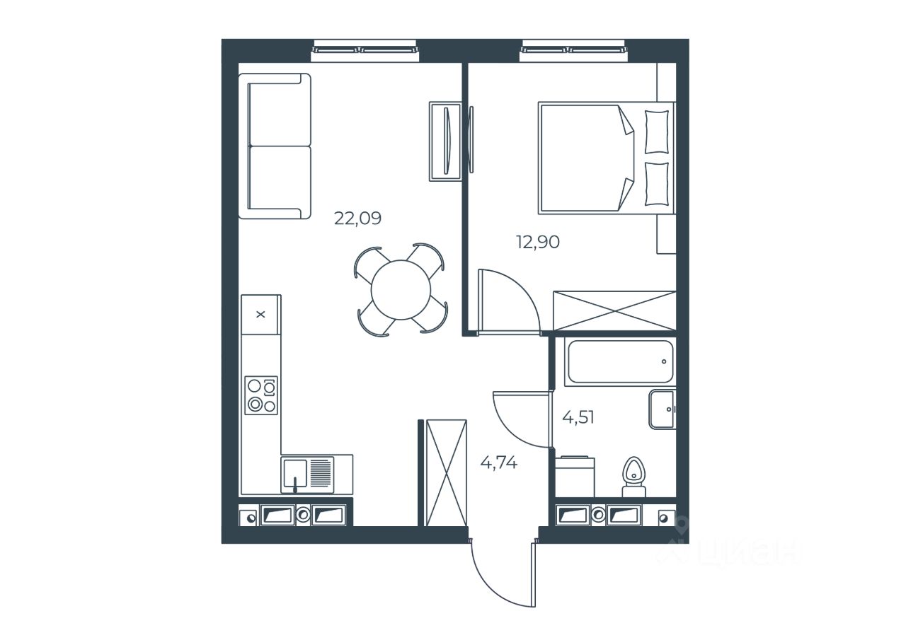 Продаётся 1-комнатная квартира в строящемся доме (Корпус 1), срок сдачи: II-кв. 2029, общей площадью 44.23 кв.м., на 27 этаже.