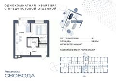 Продаётся 1-комнатная квартира в строящемся доме (Дом 1), срок сдачи: II-кв. 2026, общей площадью 34.96 кв.м., на 4 этаже. Свобода духа, свобода выбора, свобода творчества! Место, где вы точно станете автором своей жизни!
