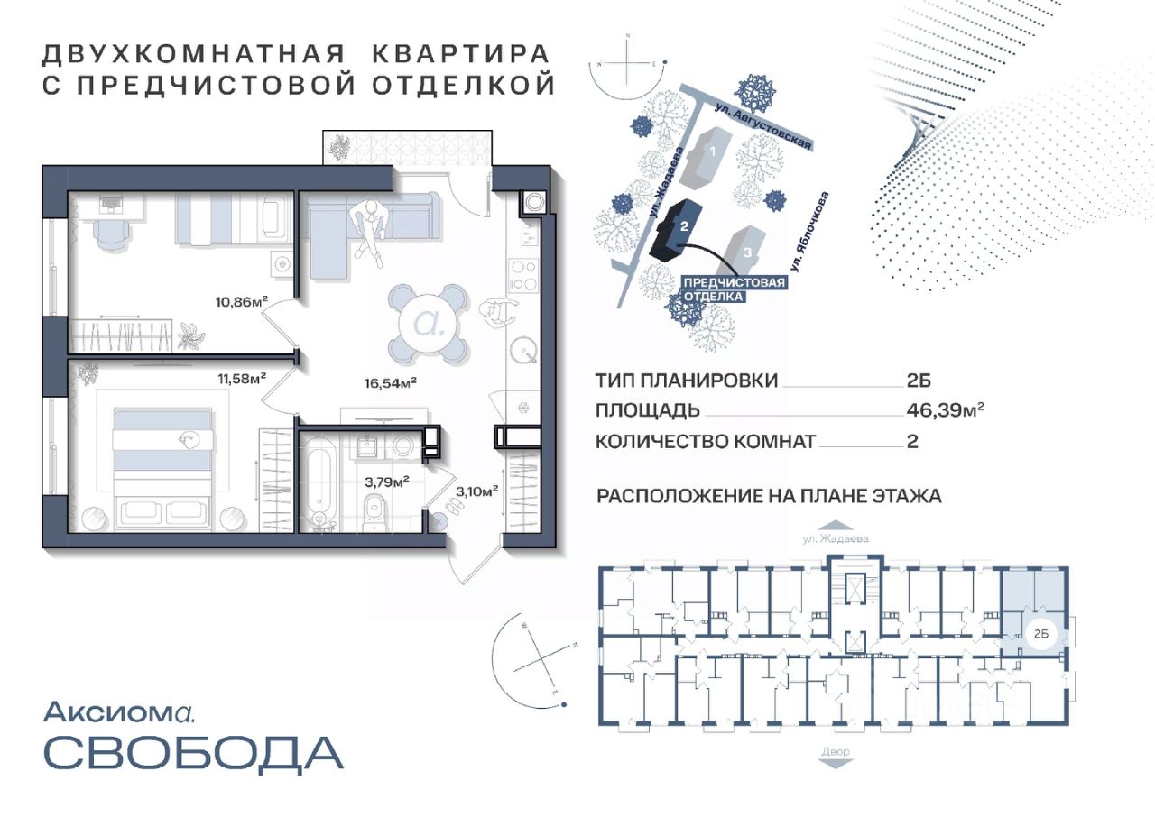 Продаётся 2-комнатная квартира в строящемся доме (Дом 2), срок сдачи: II-кв. 2026, общей площадью 46.38 кв.м., на 7 этаже. Свобода духа, свобода выбора, свобода творчества! Место, где вы точно станете автором своей жизни!