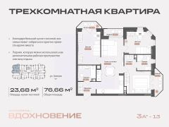 Продаётся 3-комнатная квартира в строящемся доме (Дом 50А), срок сдачи: IV-кв. 2027, общей площадью 76.66 кв.м., на 13 этаже. Новый жилой комплекс "Аксиома.Вдохновение" от застройщика "Аксиома" расположен по адресу: Астрахань, ул., Боевая, 50А