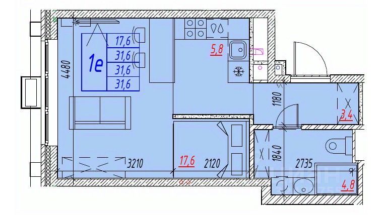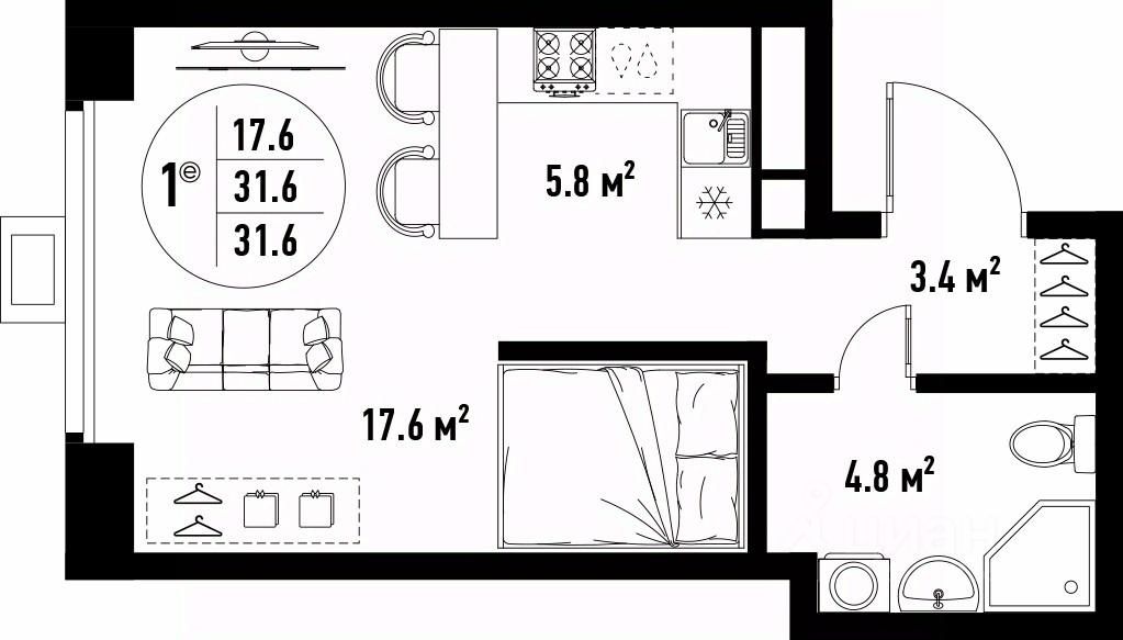 Общая площадь31,6 м²