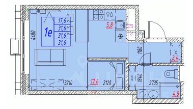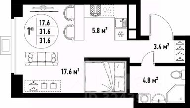 Жилая площадь17,6 м²