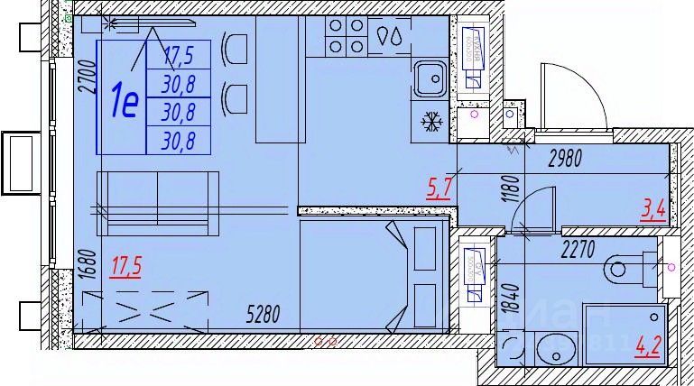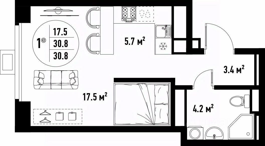 Общая площадь30,8 м²