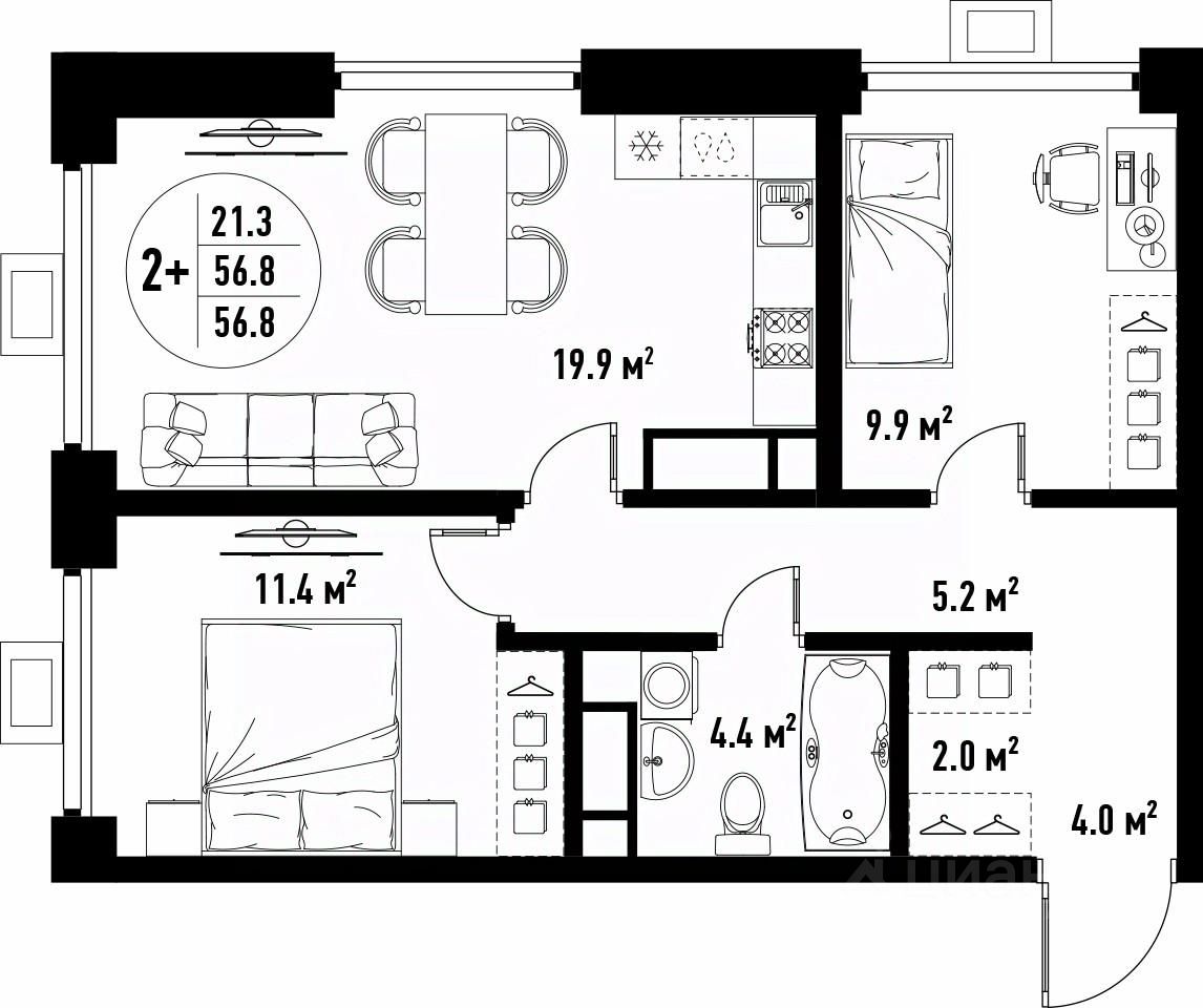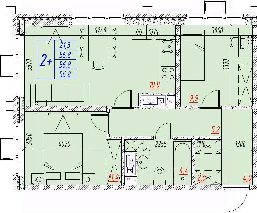 Общая площадь56,8 м²
