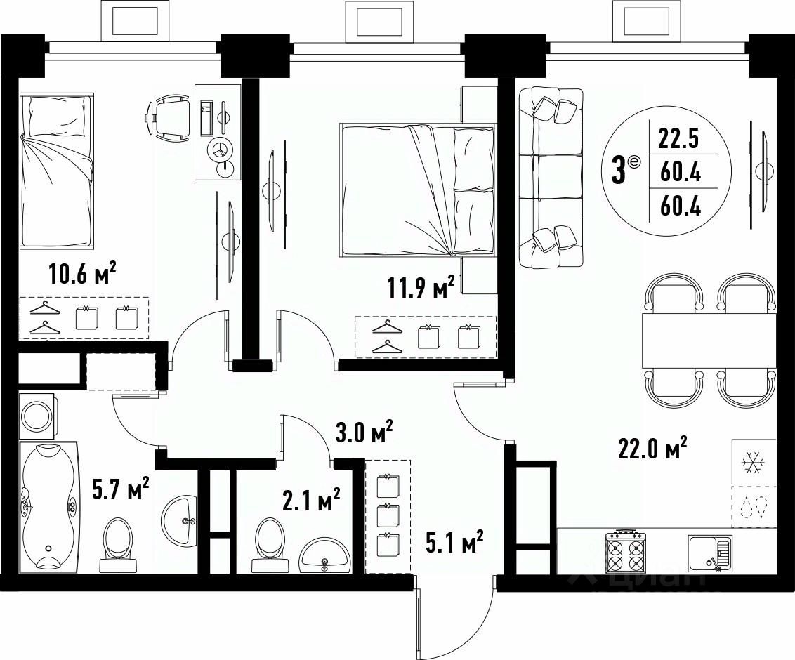 Общая площадь60,4 м²