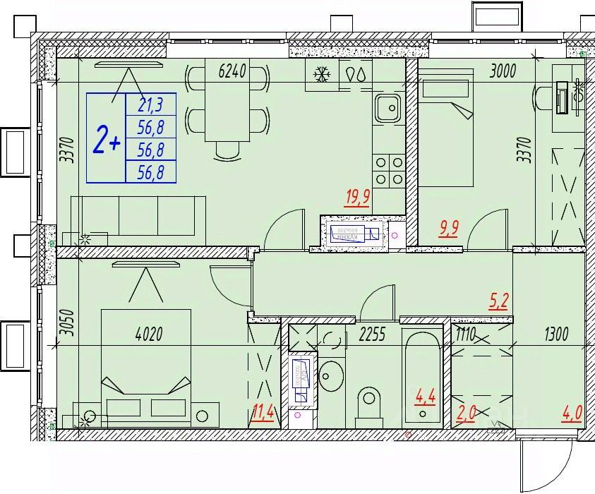Общая площадь56,8 м²