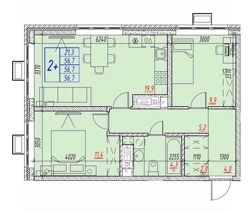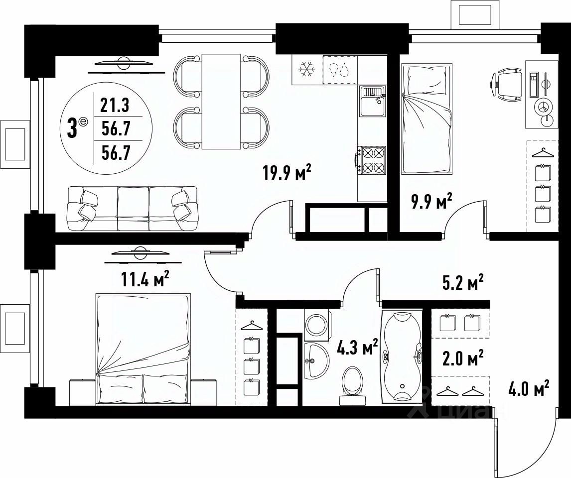 Общая площадь56,7 м²
