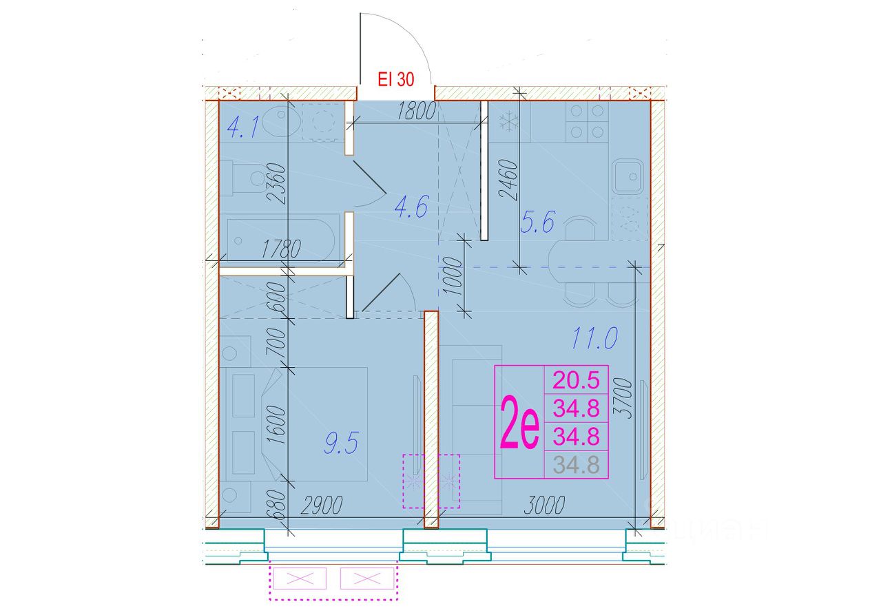 Общая площадь34,8 м²