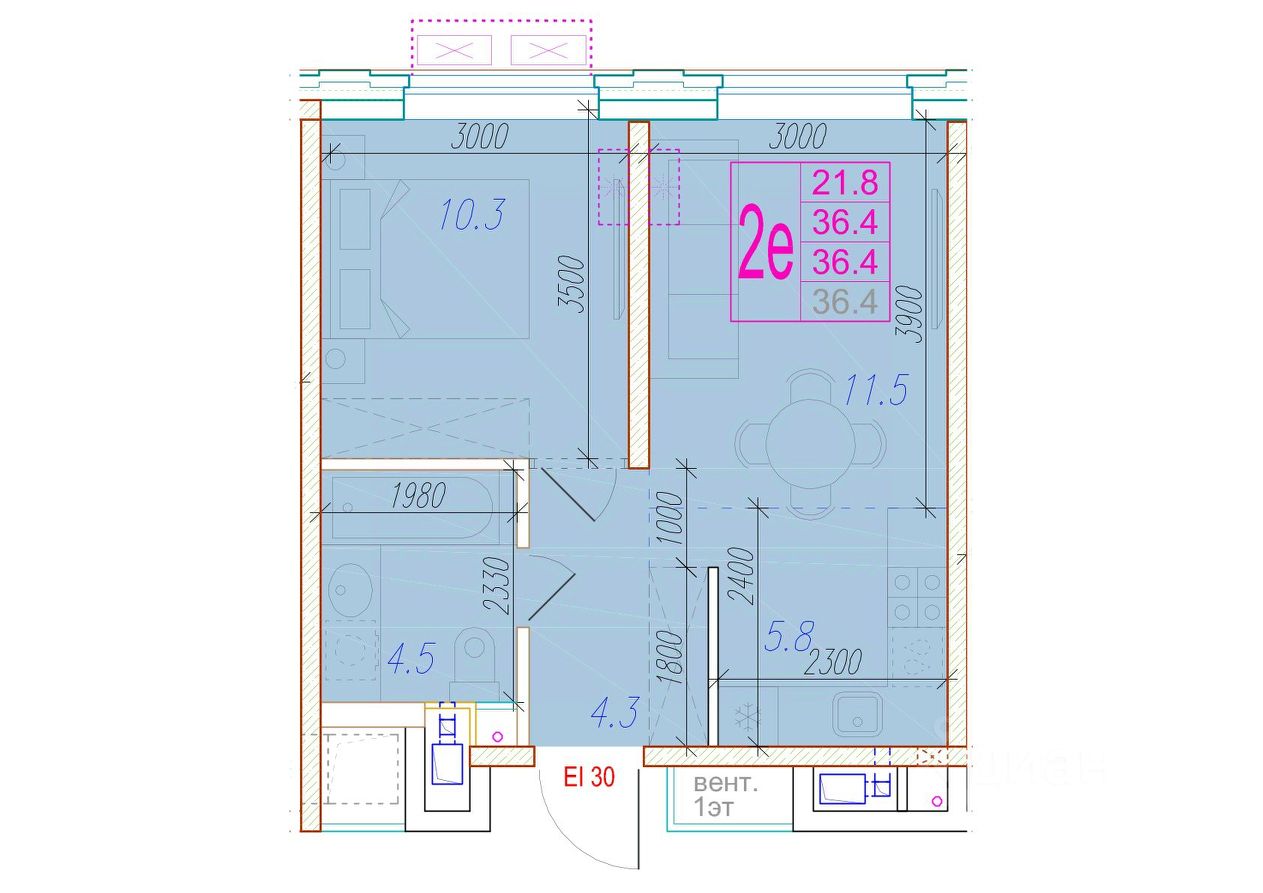 Общая площадь36,4 м²