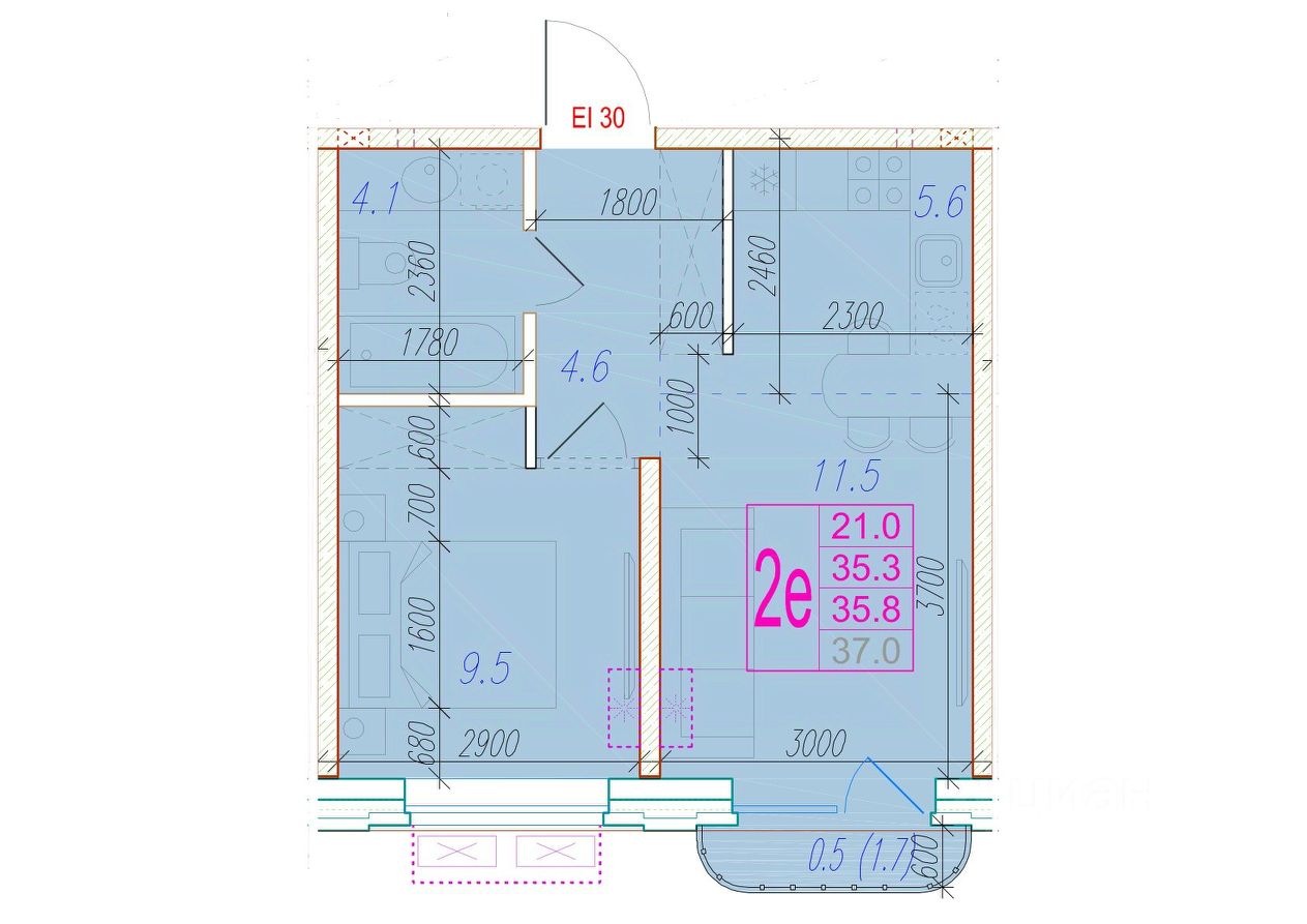 Общая площадь35,8 м²