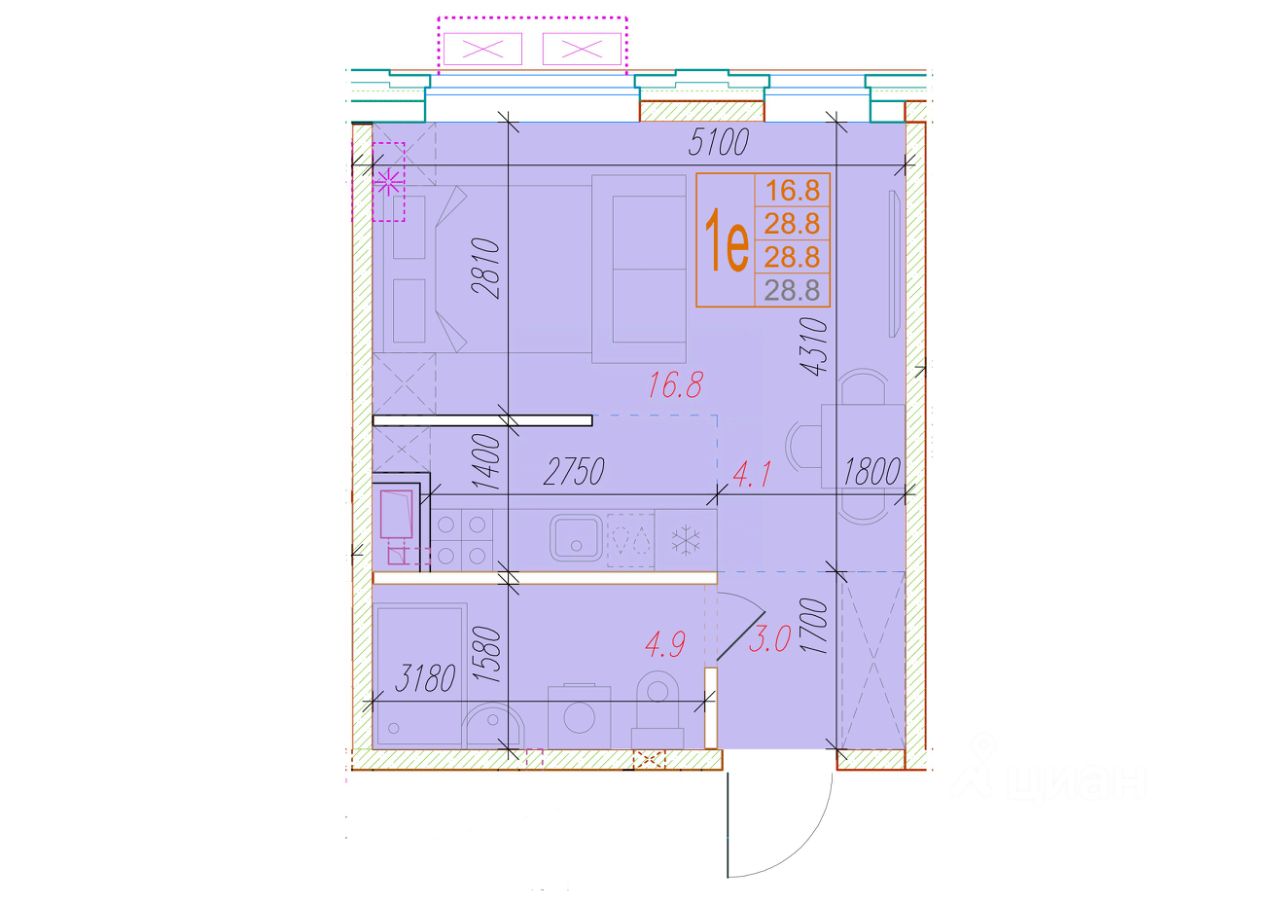 Общая площадь28,8 м²
