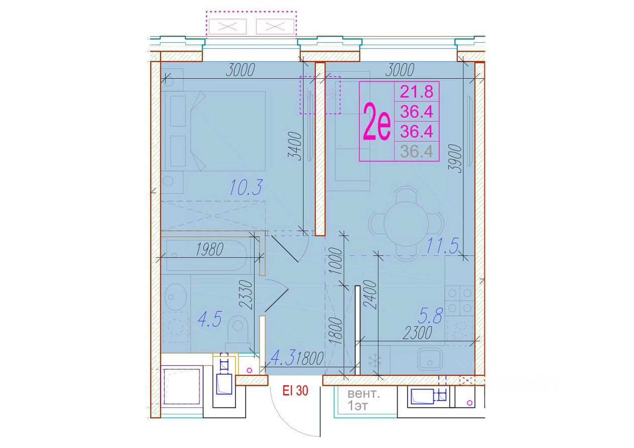 Общая площадь36,4 м²