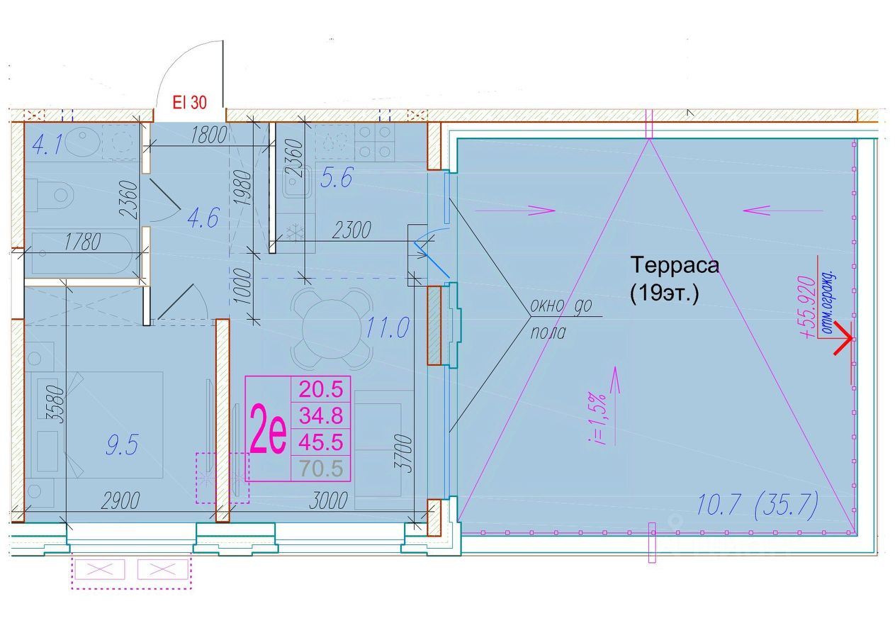 Общая площадь45,5 м²