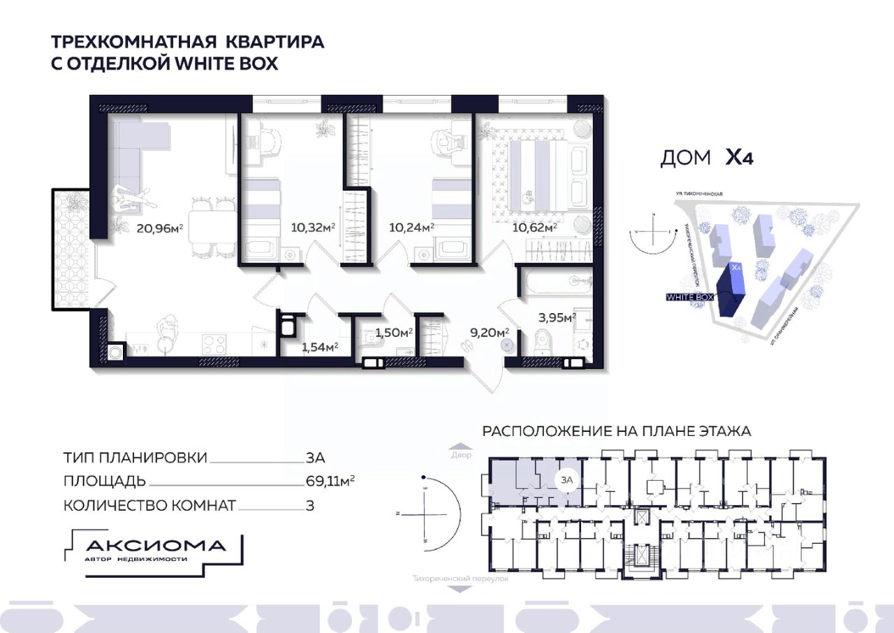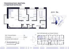 Продаётся 3-комнатная квартира в строящемся доме (Дом 4), срок сдачи: IV-кв. 2026, общей площадью 69.11 кв.м., на 3 этаже. Аксиома на Тихореченской