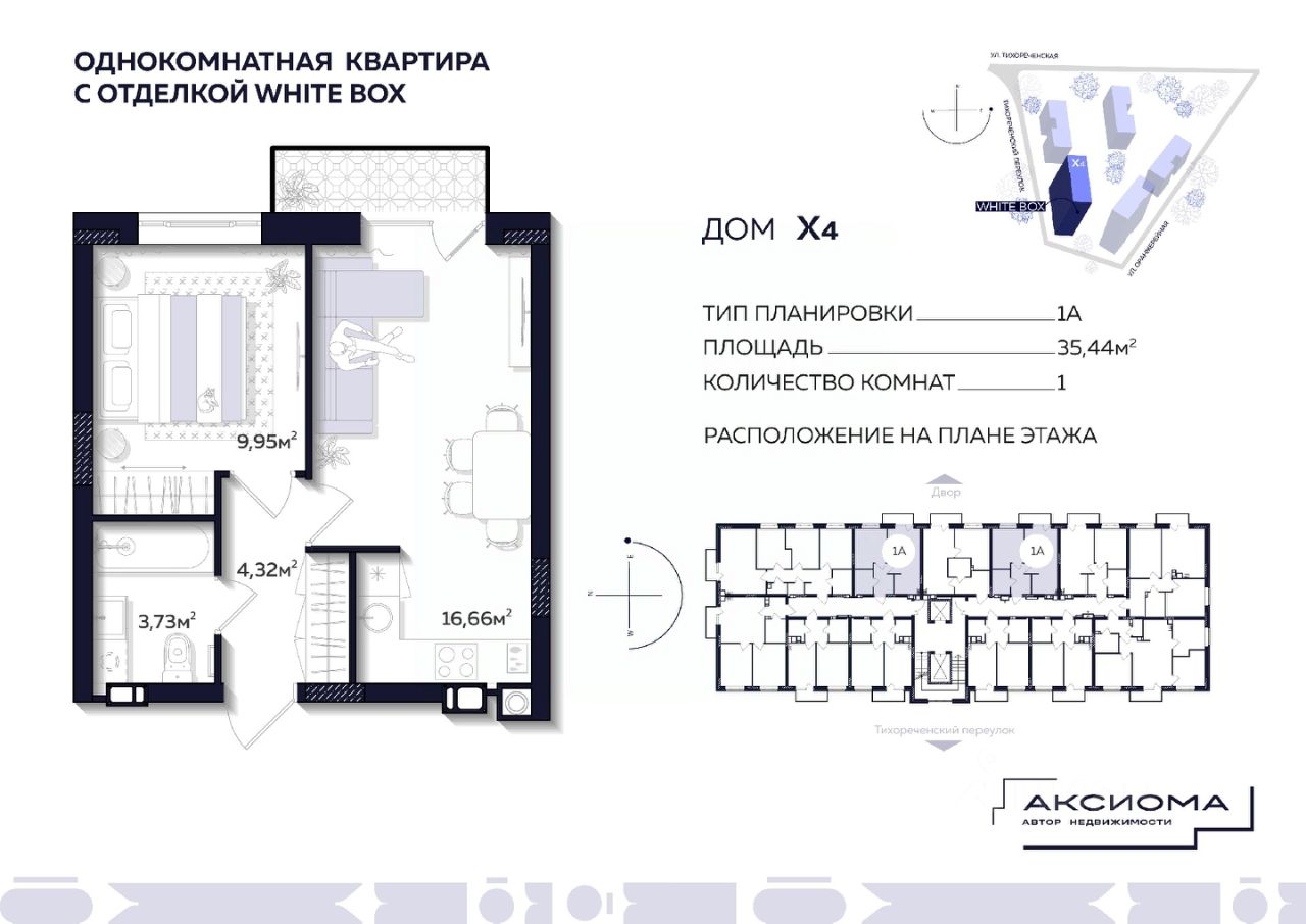 Продаётся 1-комнатная квартира в строящемся доме (Дом 4), срок сдачи: IV-кв. 2026, общей площадью 35.44 кв.м., на 3 этаже. Аксиома на Тихореченской