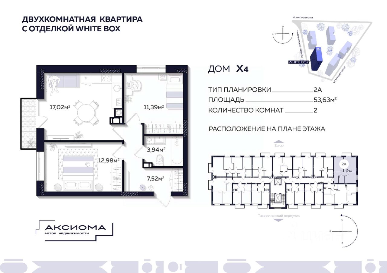 Продаётся 2-комнатная квартира в строящемся доме (Дом 4), срок сдачи: II-кв. 2027, общей площадью 53.63 кв.м., на 3 этаже. Аксиома на Тихореченской