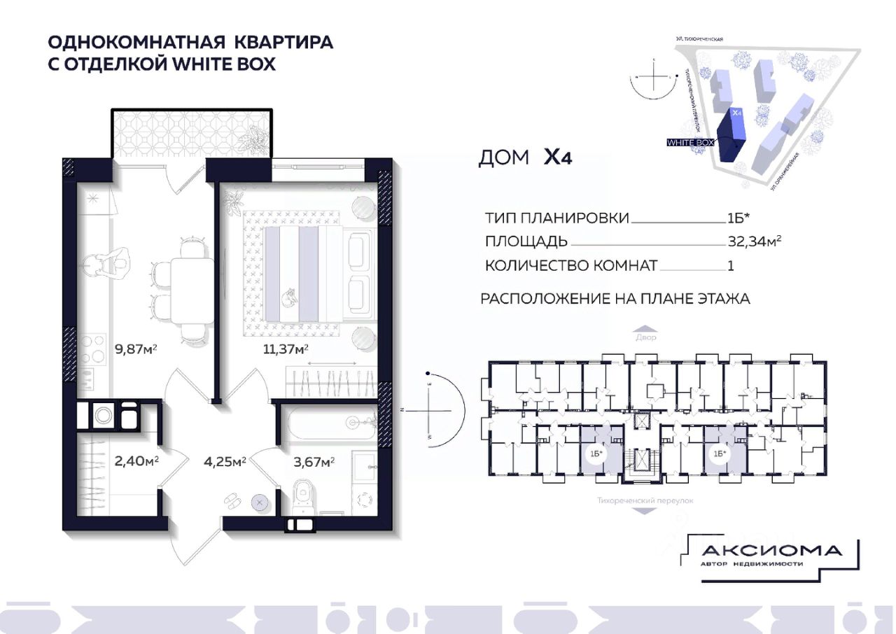 Продаётся 1-комнатная квартира в строящемся доме (Дом 4), срок сдачи: IV-кв. 2026, общей площадью 32.34 кв.м., на 7 этаже. Аксиома на Тихореченской