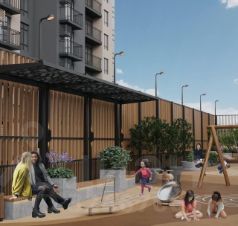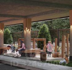 Закрытый двор без машин, игровые площадки для детей разных возрастов, многоуровневое освещение.
