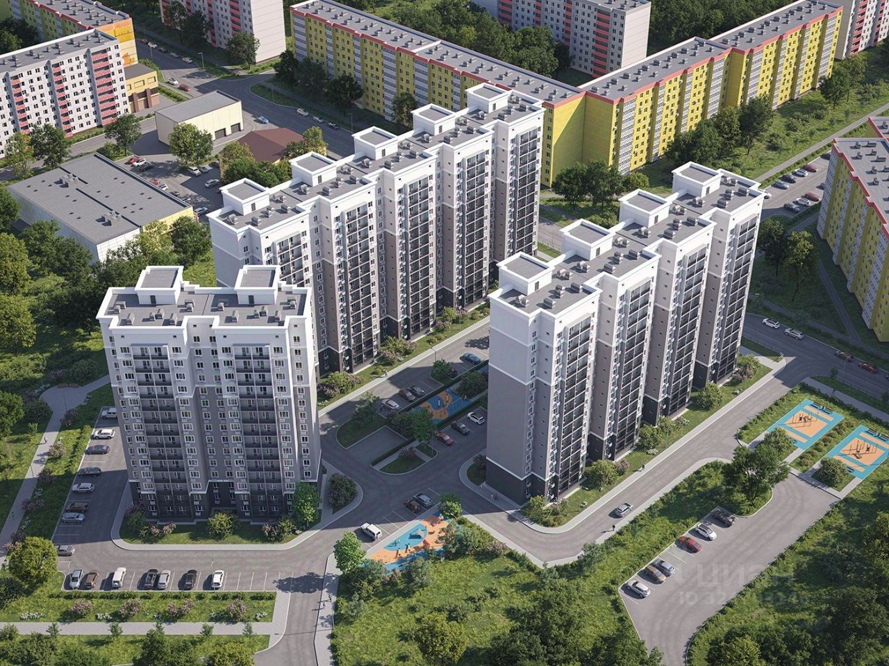 Рядом с жилым комплексом расположены школы, детский сад и торговый центр
