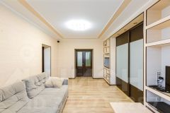 В квартире выполнен качественный ремонт, квартира не требует вложений, удобная планировка с разделением зон. Напольное покрытие ламинат, в прихожей, санузле и на кухне -плитка, установлены натяжные потолки, качественные стеклопакеты, хорошие межкомнатные двери и прочная входная.