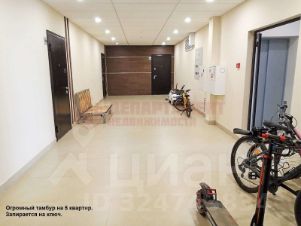 Во входной зоне надёжная входная дверь с терморазрывом. Обустроено место для хранения, с полками до потолка (а la "стенной шкаф").