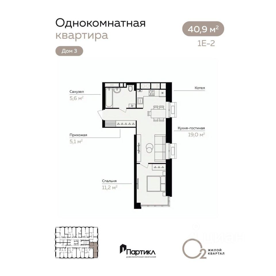 Общая площадь40,9 м²