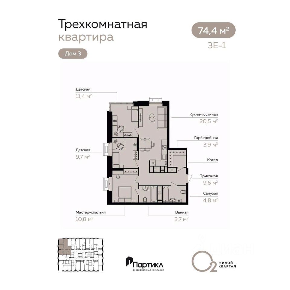 Общая площадь74,4 м²
