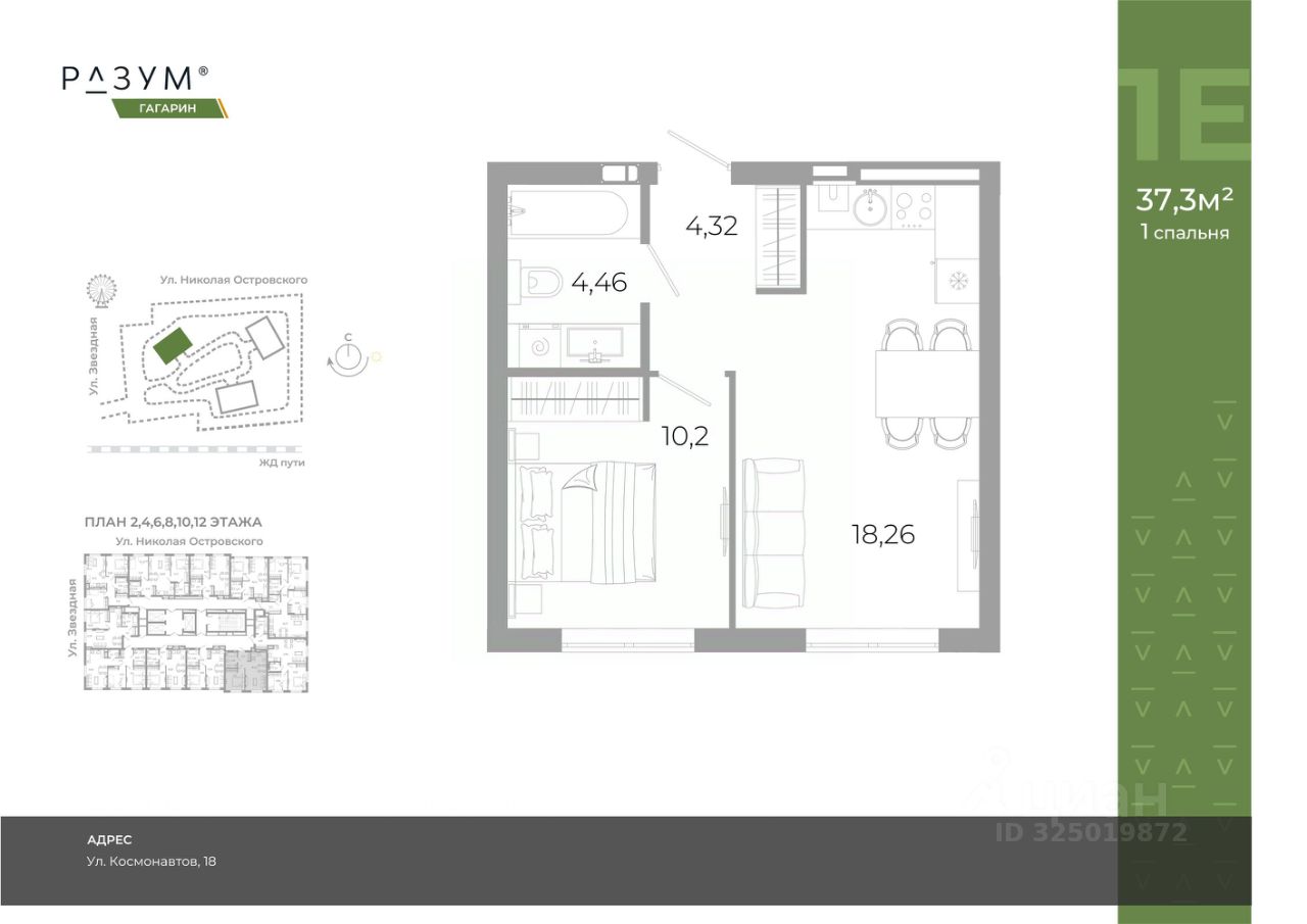 "ГАГАРИН" — это космический проект от компании "РАЗУМ", создателя "НАСЛЕДИЕ" и "Сердце Каспия". Три 25-этажных дома, как три ступени ракеты "Восток-1", на которой Юрий Гагарин отправился в космос, станут для жителей отправной точкой в начинаниях. В районе есть необходимая инфраструктура для жизни: магазины, школы, детские сады, спортивный комплекс "Звездный", гипермаркет "Лента". В первом доме комплекса есть коммерческие помещения, которые дополнят район новыми локациями. В квартирах установлены окна с отступом 50 см от пола. На пяти верхних этажах располагаются квартиры с панорамным остеклением в пол — доступны виды на весь город и Астраханский кремль! 12 планировок квартир от 25 м² до 75 м² позволят выбрать подходящий вариант для счастливой жизни. В доме представлены квартиры с балконом и без них. На каждом этаже расположено 3 кладовых помещения. "ГАГАРИН" — это: - собственный двор-парк без машин; - тематические зоны в двор-парке: пространства для отдыха и релакса с гамаками и шезлонгами, амфитеатр, зона work-out, детские игровые площадки, разделенные по возрастам, первая в городе тарзанка, водные и скалолазные конструкции, песочницы, батуты; - многоуровневое освещение и видеонаблюдение по периметру комплекса; - гостевой и многоуровневый паркинг; - просторные подъездные холлы. В основе комплекса "ГАГАРИН" заложено продуманное проектирование квадратных метров. Квартиры продаются с отделкой White box.