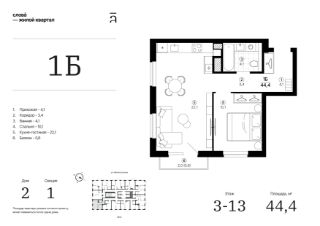 Продаётся 1-комнатная квартира в строящемся доме (Дом 2 секция 1), срок сдачи: IV-кв. 2028, общей площадью 44.38 кв.м., на 13 этаже. Жилой квартал "Слова" — это новые смыслы.