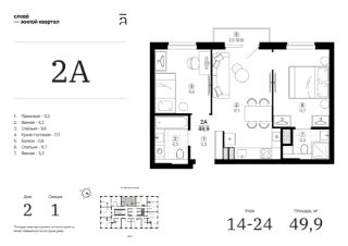 Продаётся 2-комнатная квартира в строящемся доме (Дом 2 секция 1), срок сдачи: IV-кв. 2028, общей площадью 49.93 кв.м., на 16 этаже. Жилой квартал "Слова" — это новые смыслы.