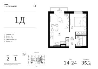 Продаётся 1-комнатная квартира в строящемся доме (Дом 2 секция 1), срок сдачи: IV-кв. 2028, общей площадью 35.19 кв.м., на 21 этаже. Жилой квартал "Слова" — это новые смыслы.