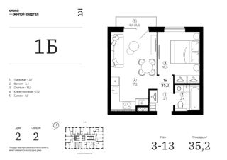 Продаётся 1-комнатная квартира в строящемся доме (Дом 2 секция 2), срок сдачи: IV-кв. 2028, общей площадью 35.15 кв.м., на 6 этаже. Жилой квартал "Слова" — это новые смыслы.