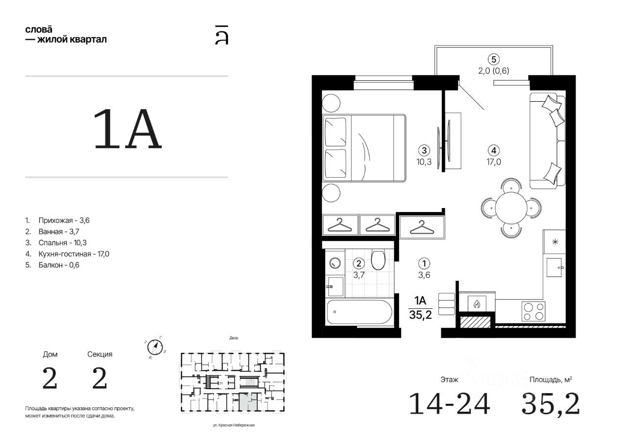 Продаётся 1-комнатная квартира в строящемся доме (Дом 2 секция 2), срок сдачи: IV-кв. 2028, общей площадью 35.15 кв.м., на 15 этаже. Жилой квартал "Слова" — это новые смыслы. В них мы заложили фундамент из собственного представления о совершенном жилье. В жилом квартале "Слова" вы живете современную, комфортную жизнь, простыми словами — ту которую вы представляете, закрывая глаза и приятно вздыхая. Образ "своего дома" мы собирали с сокровенных представлений ваших и наших знакомых, с кем пересекаются взгляды и ценности, приоритеты и принципы. Рассказывая про будущий проект друзьям и близким, мы не используем высокопарных прилагательных таких как "лучший, комфортный", мы говорим "все, как мы с вами хотели, только за нас продумали те детали, о которых мы и не знали".